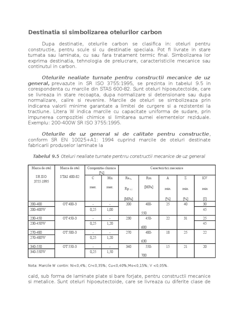 vizitati articolul complet aici : https://ro.scribd.com/doc/261457478/Destinatia-Si-Simbolizarea-Otelurilor-Carbon Simbolizarea rulmenţilor permite identificarea fiecărui rulment, astfel încât, rulmenţii cu acelaşi simbol să fie interschimbabili din punct de vedere dimensional şi funcţional. 13.02.2006 număr de pagini : In cazul laminatelor din oteluri carbon obisnuite,se considera ca se asigura o comportare la sudare buna,fara masuri.