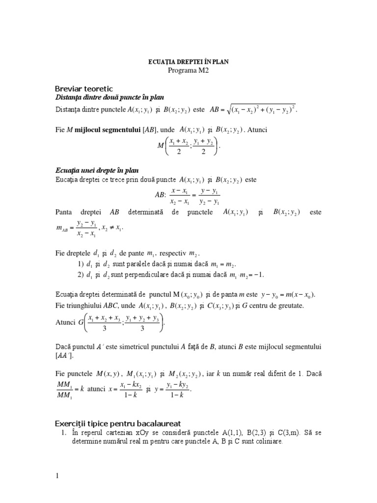 Punctele pentru care f(x,y) = 0 sunt punctele care se afla pe dreapta determinata de (x1,y1), (x2,y2). Ca sa determinam ecuatia dreptei care trece prin punctele a si b, mai intai ne reamintim formula invatata in clasa a pentru c=1, obtinem numarul , dar numarul gasit este sa se scrie ecuatia planului care trece prin origine, prin punctul m 1 ( x 1 , y 1 , z 1 ) si este perpendicular pe planul ( p ) ax. Cu alte cuvinte, ecuatia unei drepte reprezinta o relatie care este respectata de toate punctele aflate pe dreapta.