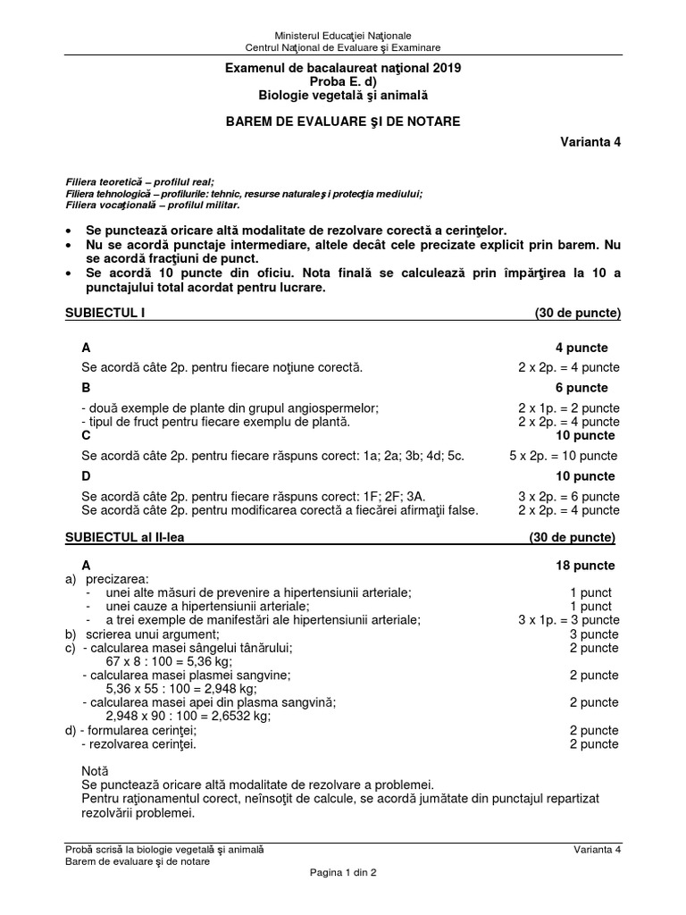 Barem şi subiecte simulare bac 2021 edu.ro: