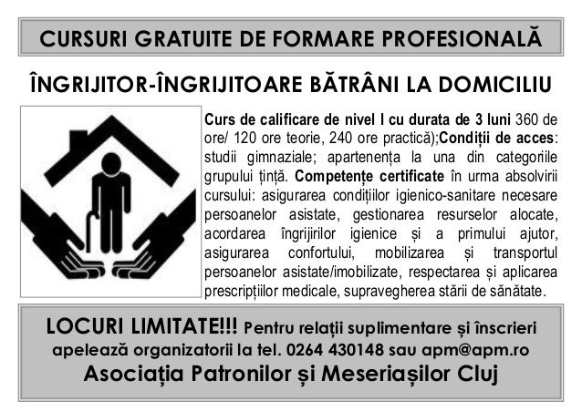 Somajul este oprit de la mine din salariu, nu imi bagi mie curs de calificare cu minimul pe economie. Asociaţia oamenilor de afaceri argeş vine cu o ofertă pentru cei aflați în căutarea unui job. Programul de formare profesională este autorizat de autoritatea națională de calificari, fiind un curs de tip specializare, de 60 de ore (20 de ore teorie / 40 de ore practică) si.