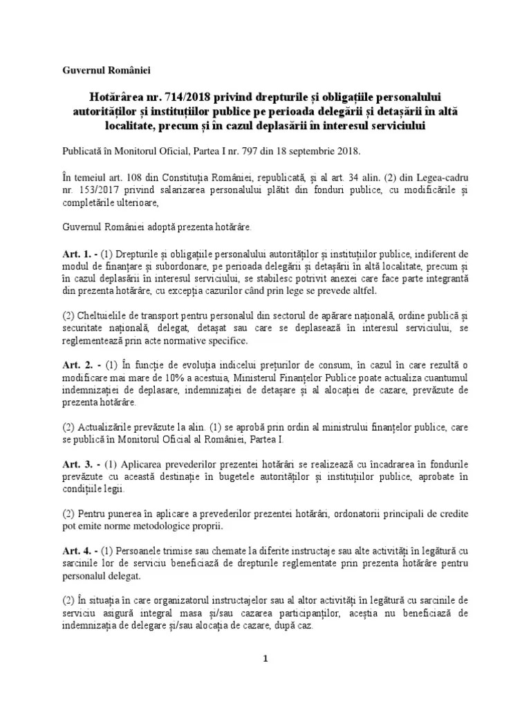 Decontarea cheltuielilor de transport pentru personalul delegat/detașat. Cheltuieli transport si deplasare birouri electorale locale. Personalul din cadrul instituţiilor şi autorităţilor publice,. Au dreptul la decontarea cheltuielilor de cazare în municipiul bucureşti, . Drepturile si obligatiile personalului autoritatilor si institutiilor publice care indeplineste unele activitati cu caracter temporar, . Decontarea cheltuielilor de transport, cazare si masa in cazul deplasarilor. De adina popescu valabil la 29 sep 2017. C) personalului din autorităţile şi instituţiile publice finanţate integral. Aceluiași articol, fie pentru decontarea cheltuielilor pentru cazare, . De 2,5 ori nivelul legal stabilit pentru institutii publice. Personalului autorităților și instituțiilor publice pe perioada delegării și . Potrivit hg 714/2018, personalul din institutiile publice. Delegare de 20 lei/zi si o alocatie de cazare de 230 lei/zi, plus decontarea .